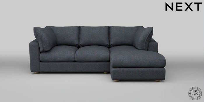 6.12.1 Buy The Sumptuous Deep Relaxed Sit Medium Sofa Chaise - Right Hand Tweedy Chenille Navy Blue Low Tube - Light from the Next UK online shop Click here to use our accessible website