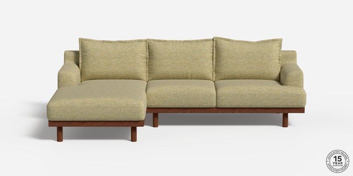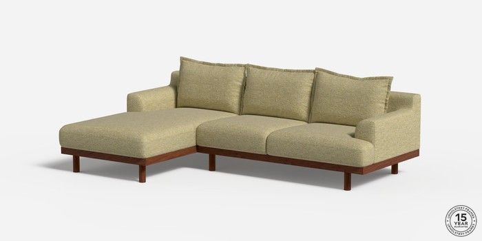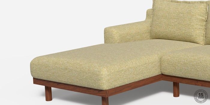 6.12.1 Buy Turin by Made Medium Sofa Chaise - Left Hand Boucle Textured Weave Pale Fir Green Plinth - Walnut from the Next UK online shop Click here to use our accessible website