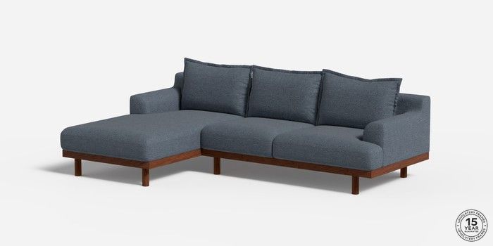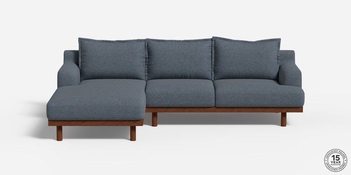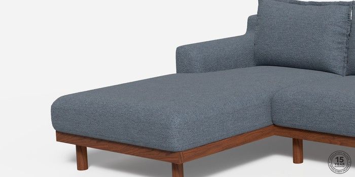 6.12.1 Buy Turin by Made Medium Sofa Chaise - Left Hand Boucle Textured Weave Slate Blue Plinth - Walnut from the Next UK online shop Click here to use our accessible website