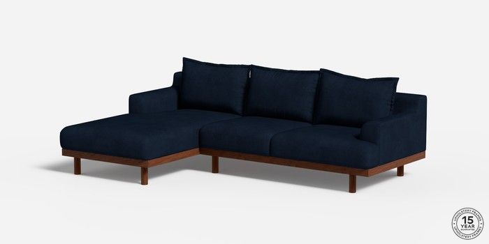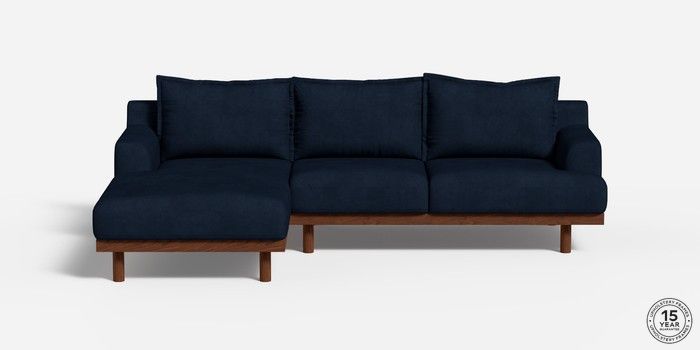 6.12.1 Buy Turin by Made Medium Sofa Chaise - Left Hand Matt Velvet Easy Clean Dark Navy Blue Plinth - Walnut from the Next UK online shop Click here to use our accessible website