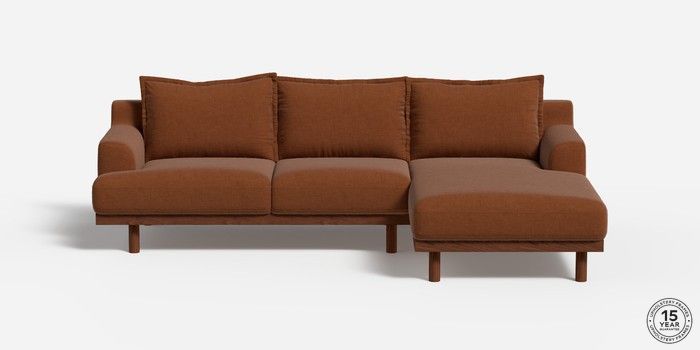 6.12.1 Buy Turin by Made Medium Sofa Chaise - Right Hand Etched Chenille Rust Orange Plinth - Walnut from the Next UK online shop Click here to use our accessible website