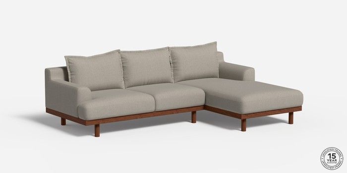 6.12.1 Buy Turin by Made Medium Sofa Chaise - Right Hand Textured Slub Weave Pumice Grey Plinth - Walnut from the Next UK online shop Click here to use our accessible website