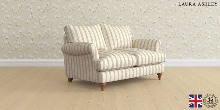 6.12.1 Buy Westley by Laura Ashley 2 Seater Small Sofa Kinsham Stripe Natural Mid Turned - Teak from the Next UK online shop Click here to use our accessible website