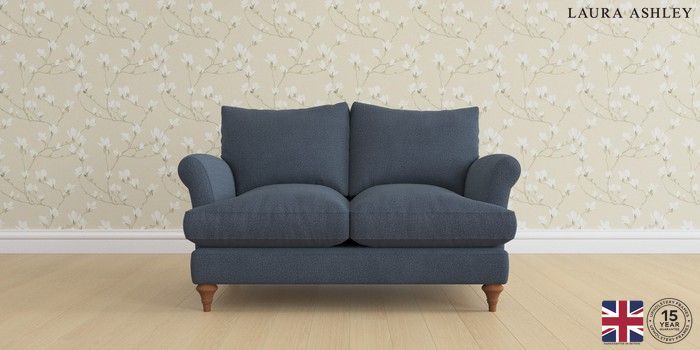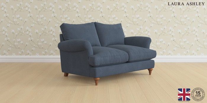 6.12.1 Buy Westley by Laura Ashley 2 Seater Small Sofa Lundar Chenille Navy Blue Mid Turned - Teak from the Next UK online shop Click here to use our accessible website