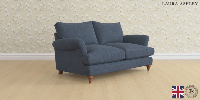 6.12.1 Buy Westley by Laura Ashley 2 Seater Sofa Lundar Chenille Navy Blue Mid Turned - Teak from the Next UK online shop Click here to use our accessible website