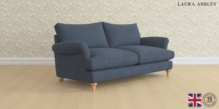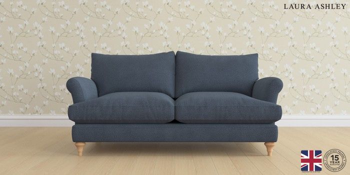 6.12.1 Buy Westley by Laura Ashley 3 Seater Small Sofa Lundar Chenille Navy Blue Mid Turned - Light Oak from the Next UK online shop Click here to use our accessible website