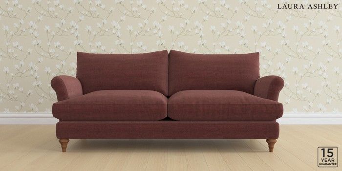 6.12.1 Buy Westley by Laura Ashley 3 Seater Sofa Edwin Chenille Burgundy Red Mid Turned - Teak from the Next UK online shop Click here to use our accessible website