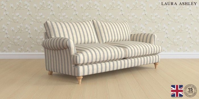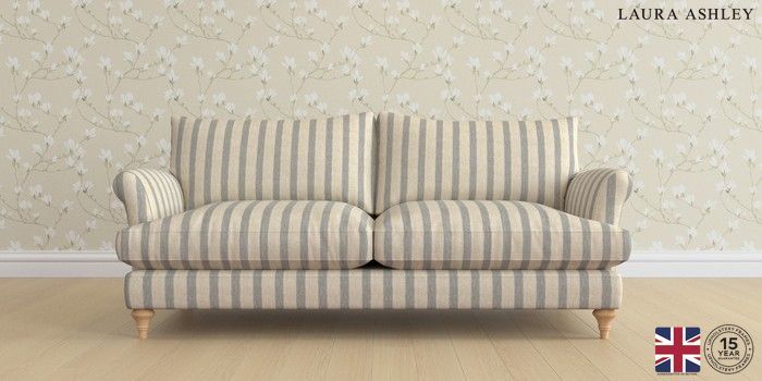 6.12.1 Buy Westley by Laura Ashley 3 Seater Sofa Kinsham Stripe Seaspray Blue Mid Turned - Light Oak from the Next UK online shop Click here to use our accessible website
