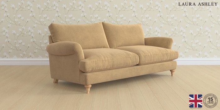 6.12.1 Buy Westley by Laura Ashley 3 Seater Sofa Lundar Chenille Caramel Natural Mid Turned - Light Oak from the Next UK online shop Click here to use our accessible website
