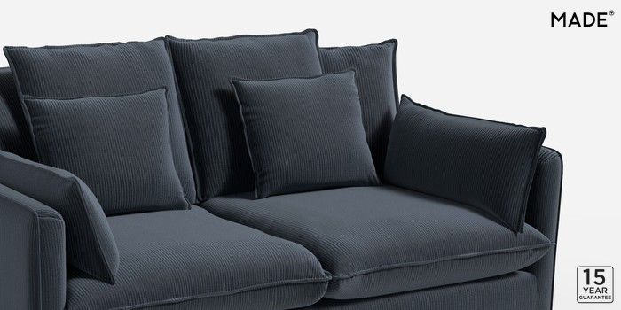 6.10.9 Buy Whitby by Made 3 Seater Sofa Matt Corduroy Midnight Blue Sleigh - Dark Brown from the Next UK online shop Click here to use our accessible website