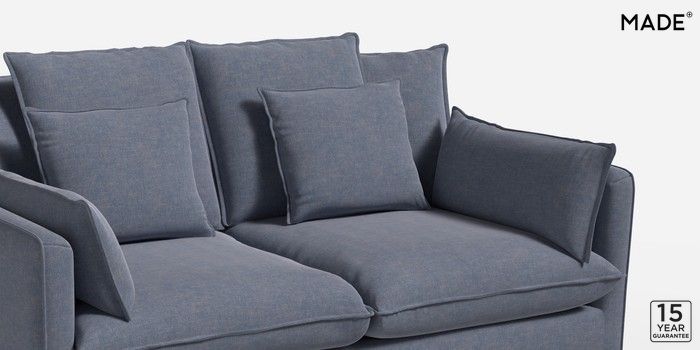 6.10.9 Buy Whitby by Made 3 Seater Sofa Soft Chenille Easy Clean Denim Blue Sleigh - Dark Brown from the Next UK online shop Click here to use our accessible website