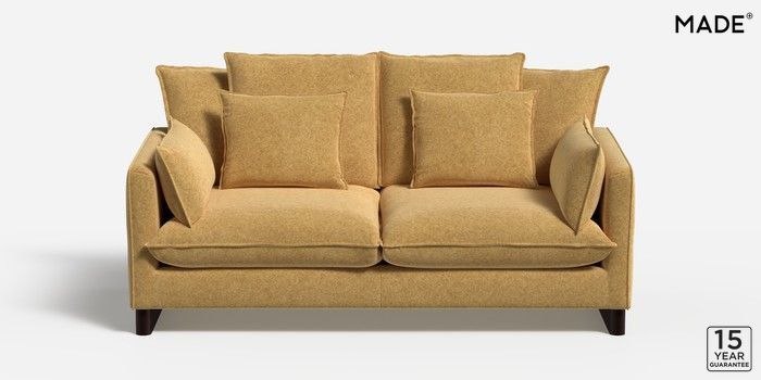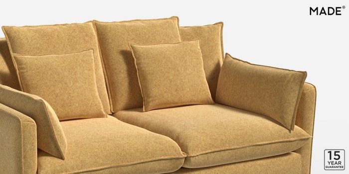 6.10.9 Buy Whitby by Made 3 Seater Sofa Soft Chenille Easy Clean Yellow Ochre Sleigh - Dark Brown from the Next UK online shop Click here to use our accessible website