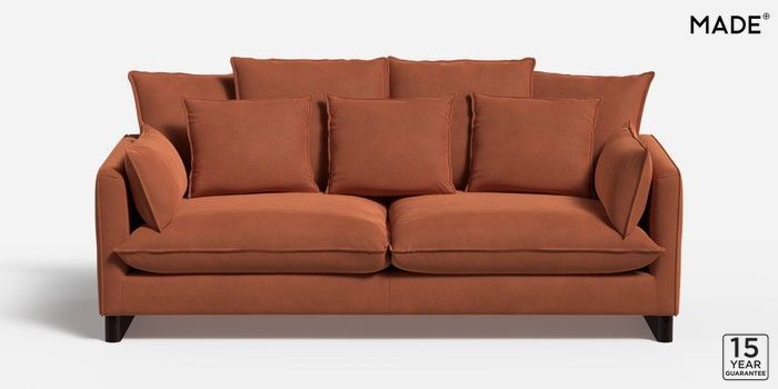 6.10.9 Buy Whitby by Made 4 Seater Sofa Matt Velvet Easy Clean Burnt Orange Sleigh - Dark Brown from the Next UK online shop Click here to use our accessible website