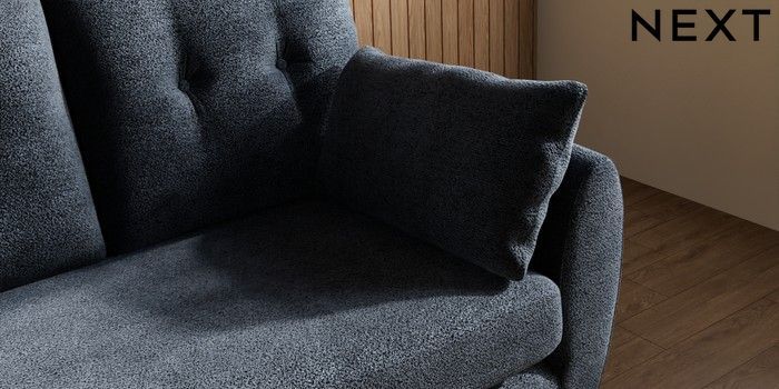 7.3.1 Buy Wilson Buttoned Back 2 Seater Small Sofa Boucle Chenille Dark Slate Blue Low Retro Tapered Metal Cap - Mid from the Next UK online shop Click here to use our accessible website