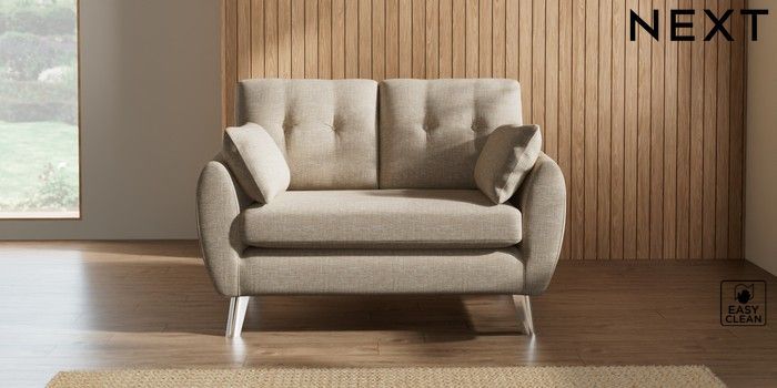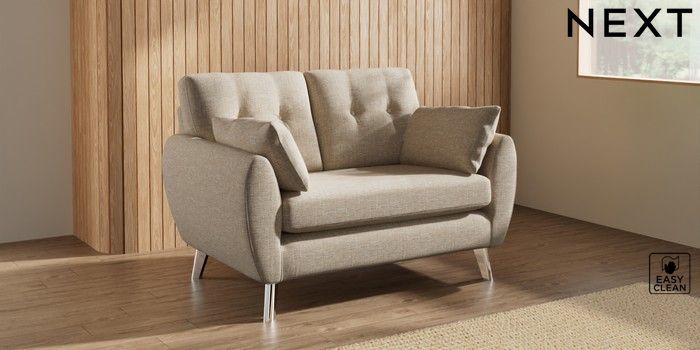 7.3.1 Buy Wilson Buttoned Back 2 Seater Small Sofa Boucle Weave Easy Clean Dark Natural Metal Tapered - Chrome from the Next UK online shop Click here to use our accessible website