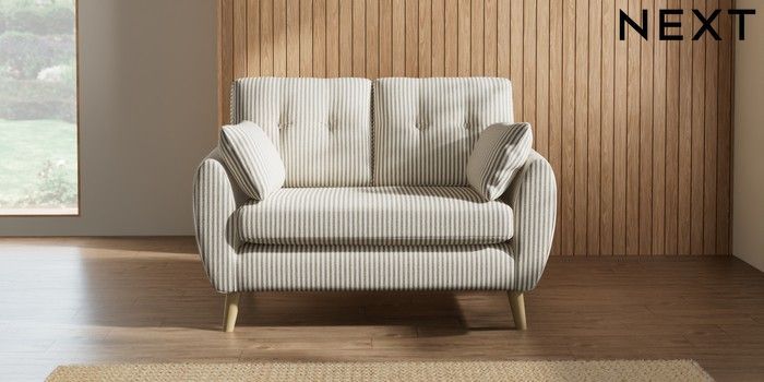 7.2.10 Buy Wilson Buttoned Back 2 Seater Small Sofa Chenille Stripe Moss Green Retro Tapered - Light from the Next UK online shop Click here to use our accessible website