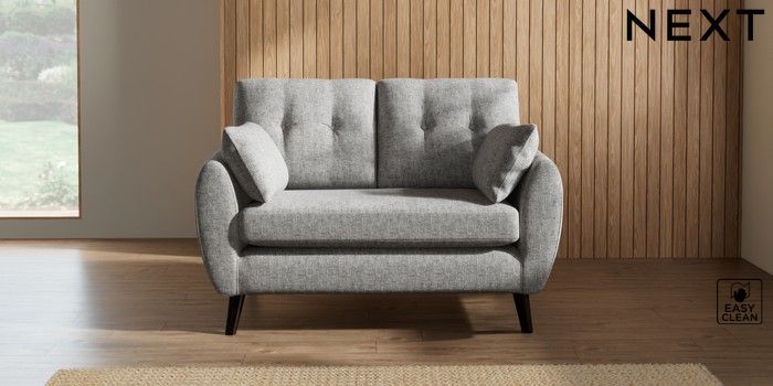 7.2.10 Buy Wilson Buttoned Back 2 Seater Small Sofa Chunky Boucle Easy Clean Light Grey Retro Tapered - Dark from the Next UK online shop Click here to use our accessible website
