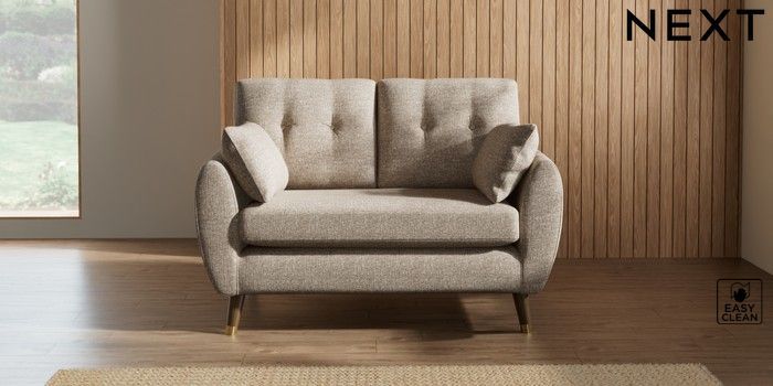 7.3.1 Buy Wilson Buttoned Back 2 Seater Small Sofa Chunky Boucle Easy Clean Mid Natural Low Retro Tapered Metal Cap - Mid from the Next UK online shop Click here to use our accessible website