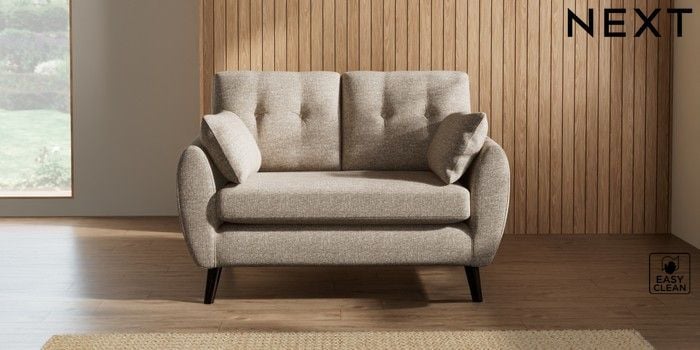 7.2.10 Buy Wilson Buttoned Back 2 Seater Small Sofa Chunky Boucle Easy Clean Mid Natural Retro Tapered - Dark from the Next UK online shop Click here to use our accessible website