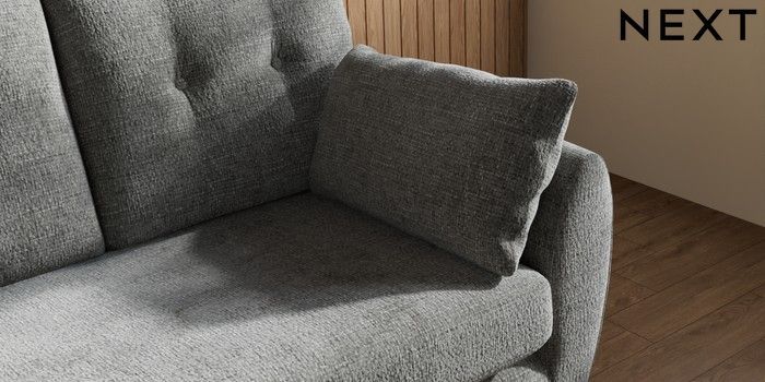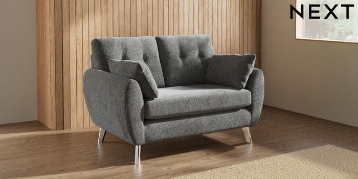 7.3.1 Buy Wilson Buttoned Back 2 Seater Small Sofa Chunky Chenille Dark Grey Metal Tapered - Chrome from the Next UK online shop