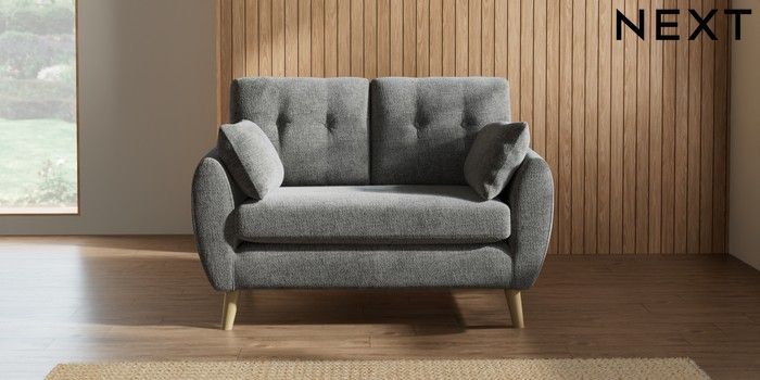 7.2.10 Buy Wilson Buttoned Back 2 Seater Small Sofa Chunky Chenille Dark Grey Retro Tapered - Light from the Next UK online shop Click here to use our accessible website