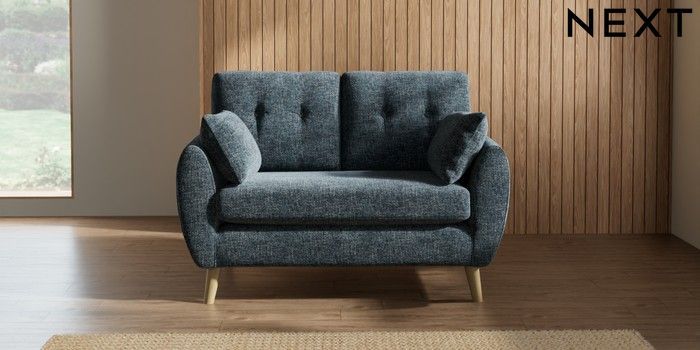 7.2.10 Buy Wilson Buttoned Back 2 Seater Small Sofa Chunky Chenille Dark Navy Blue Retro Tapered - Light from the Next UK online shop Click here to use our accessible website