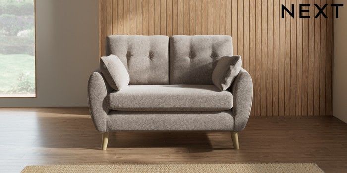 7.2.10 Buy Wilson Buttoned Back 2 Seater Small Sofa Chunky Chenille Light Dove Retro Tapered - Light from the Next UK online shop Click here to use our accessible website