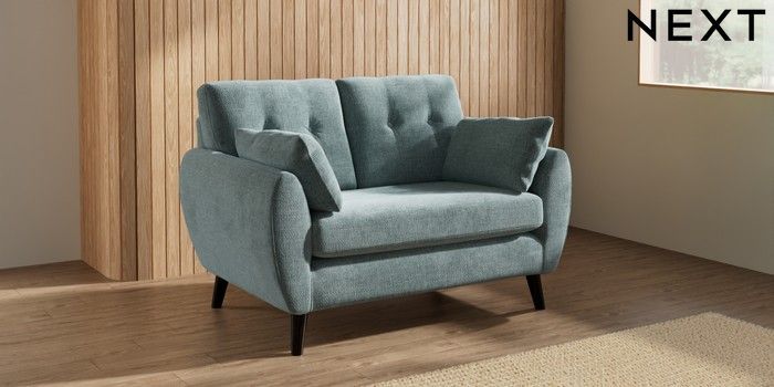 7.3.1 Buy Wilson Buttoned Back 2 Seater Small Sofa Chunky Chenille Light Teal Green Retro Tapered - Dark from the Next UK online shop