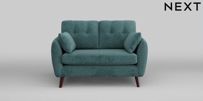 6.12.1 Buy Wilson Buttoned Back 2 Seater Small Sofa Chunky Chenille Mid Teal Green Retro Tapered - Dark Brown from the Next UK online shop Click here to use our accessible website
