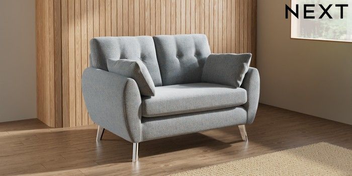 7.3.1 Buy Wilson Buttoned Back 2 Seater Small Sofa Chunky Marl Mid Grey Metal Tapered - Chrome from the Next UK online shop