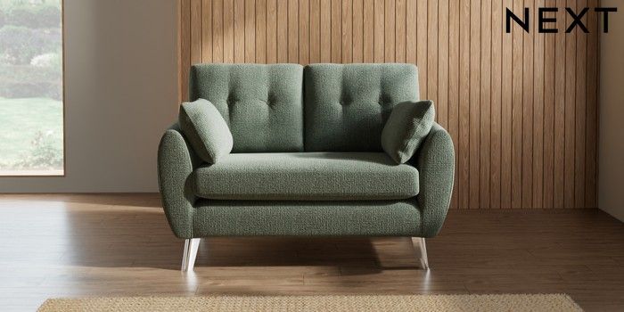 7.2.10 Buy Wilson Buttoned Back 2 Seater Small Sofa Chunky Texture Mid Forest Green Metal Tapered - Chrome from the Next UK online shop Click here to use our accessible website