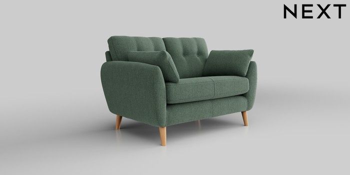 6.12.1 Buy Wilson Buttoned Back 2 Seater Small Sofa Chunky Texture Mid Forest Green Retro Tapered - Light from the Next UK online shop Click here to use our accessible website