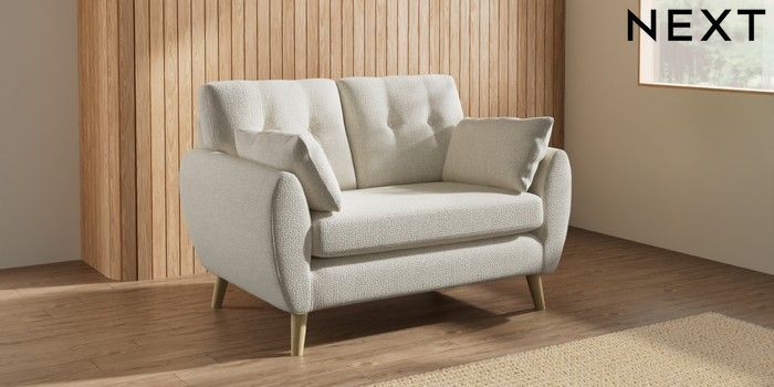 7.3.1 Buy Wilson Buttoned Back 2 Seater Small Sofa Chunky Texture Oyster Retro Tapered - Light from the Next UK online shop