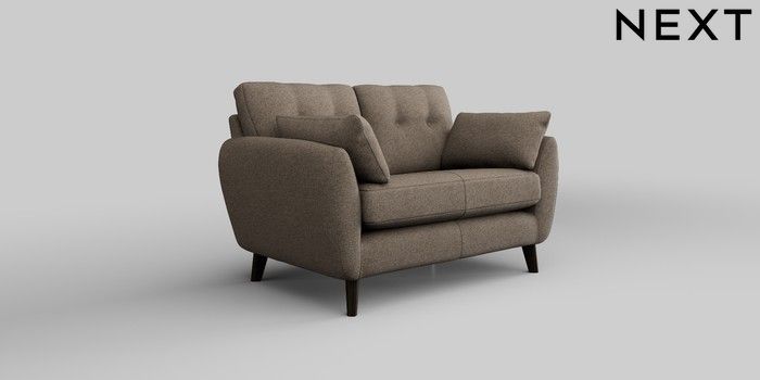 6.12.1 Buy Wilson Buttoned Back 2 Seater Small Sofa Chunky Weave Dark Natural Retro Tapered - Dark from the Next UK online shop Click here to use our accessible website