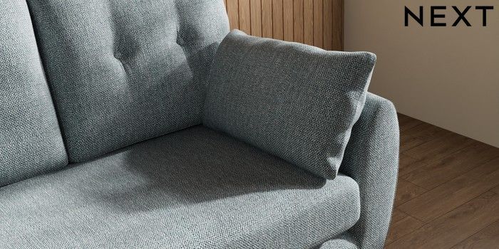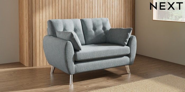7.3.1 Buy Wilson Buttoned Back 2 Seater Small Sofa Chunky Weave Mid Blue Metal Tapered - Chrome from the Next UK online shop