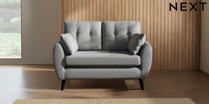7.2.10 Buy Wilson Buttoned Back 2 Seater Small Sofa Chunky Weave Mid Grey Retro Tapered - Dark from the Next UK online shop Click here to use our accessible website