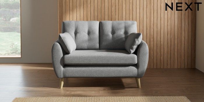 7.2.10 Buy Wilson Buttoned Back 2 Seater Small Sofa Chunky Weave Mid Grey Retro Tapered - Light from the Next UK online shop Click here to use our accessible website