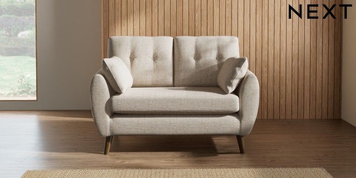 7.2.10 Buy Wilson Buttoned Back 2 Seater Small Sofa Chunky Weave Mid Natural Retro Tapered - Mid from the Next UK online shop Click here to use our accessible website