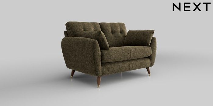 6.12.13 Buy Wilson Buttoned Back 2 Seater Small Sofa Cotswold Chenille Dark Green Low Retro Tapered Metal Cap - Mid from the Next UK online shop Click here to use our accessible website
