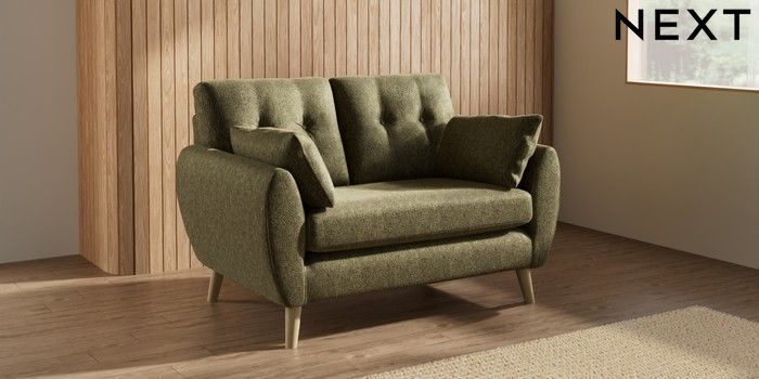 7.3.1 Buy Wilson Buttoned Back 2 Seater Small Sofa Cotswold Chenille Dark Green Retro Tapered - Light from the Next UK online shop Click here to use our accessible website