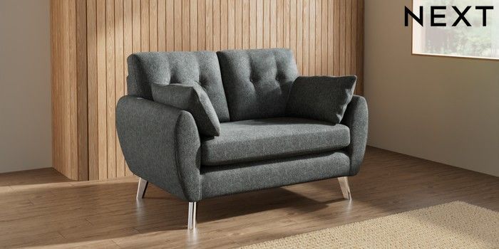 7.3.1 Buy Wilson Buttoned Back 2 Seater Small Sofa Cotswold Chenille Dark Grey Metal Tapered - Chrome from the Next UK online shop