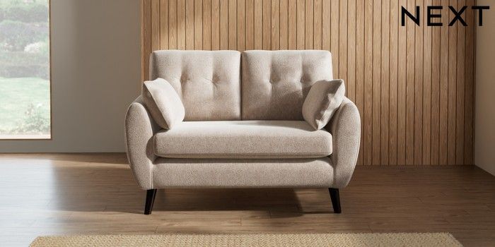 7.2.10 Buy Wilson Buttoned Back 2 Seater Small Sofa Cotswold Chenille Light Natural Retro Tapered - Dark from the Next UK online shop Click here to use our accessible website