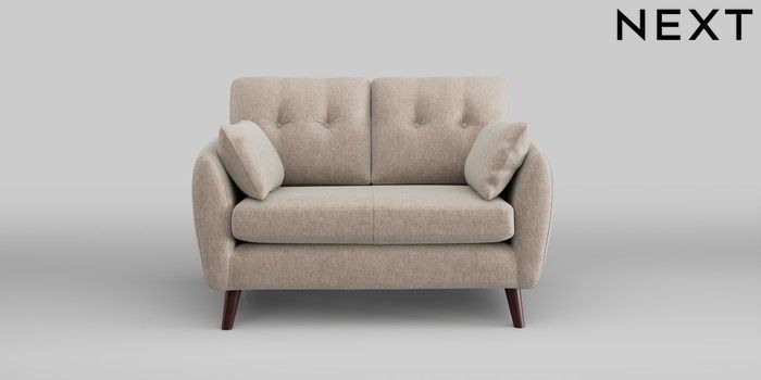 6.12.1 Buy Wilson Buttoned Back 2 Seater Small Sofa Cotswold Chenille Light Natural Retro Tapered - Dark Brown from the Next UK online shop Click here to use our accessible website