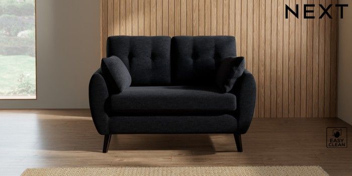 7.2.10 Buy Wilson Buttoned Back 2 Seater Small Sofa Fine Chenille Easy Clean Black Retro Tapered - Dark from the Next UK online shop Click here to use our accessible website