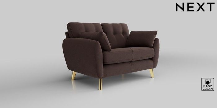 6.12.1 Buy Wilson Buttoned Back 2 Seater Small Sofa Fine Chenille Easy Clean Chocolate Brown Metal Tapered - Gold from the Next UK online shop Click here to use our accessible website