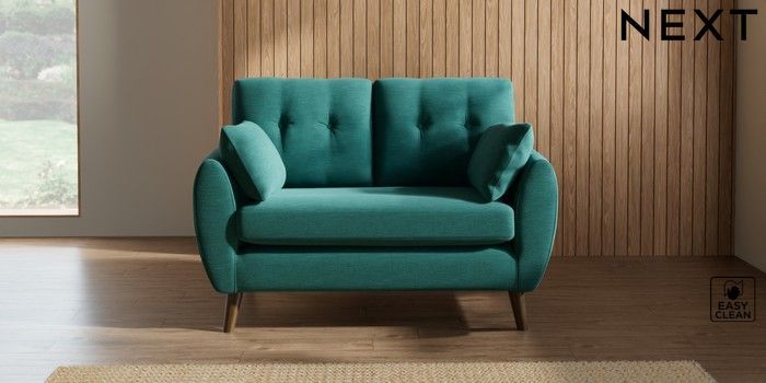 7.2.10 Buy Wilson Buttoned Back 2 Seater Small Sofa Fine Chenille Easy Clean Dark Juniper Green Retro Tapered - Mid from the Next UK online shop Click here to use our accessible website