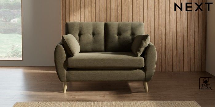 7.3.1 Buy Wilson Buttoned Back 2 Seater Small Sofa Fine Chenille Easy Clean Dark Moss Green Retro Tapered - Light from the Next UK online shop Click here to use our accessible website