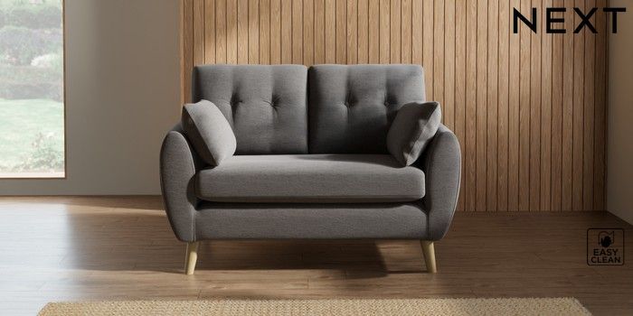 7.2.10 Buy Wilson Buttoned Back 2 Seater Small Sofa Fine Chenille Easy Clean Dark Smoke Grey Retro Tapered - Light from the Next UK online shop Click here to use our accessible website