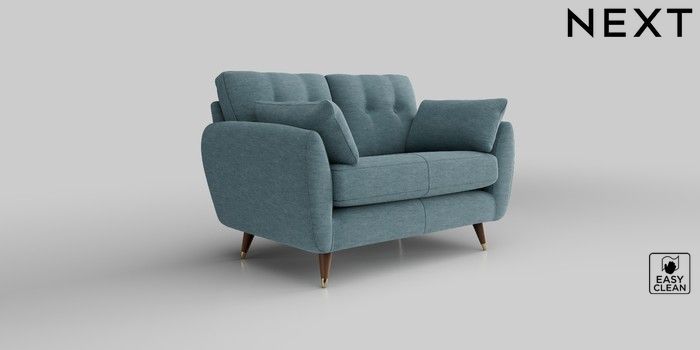 6.12.13 Buy Wilson Buttoned Back 2 Seater Small Sofa Fine Chenille Easy Clean Mid Blue Low Retro Tapered Metal Cap - Mid from the Next UK online shop Click here to use our accessible website