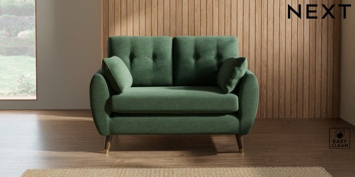 7.3.1 Buy Wilson Buttoned Back 2 Seater Small Sofa Fine Chenille Easy Clean Mid Khaki Green Low Retro Tapered Metal Cap - Mid from the Next UK online shop Click here to use our accessible website